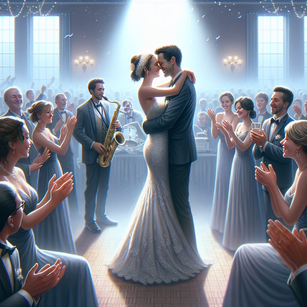 Der var stille et øjeblik. Brudevalsen var netop afsluttet, og gæsterne klappede stadig, nogle med blanke øjne. Brudeparret stod midt på gulvet, tæt omslynget og smilende, mens DJ’en dæmpede musikken. Luften var tyk af følelser – men også fuld af forventning. Hvad nu?